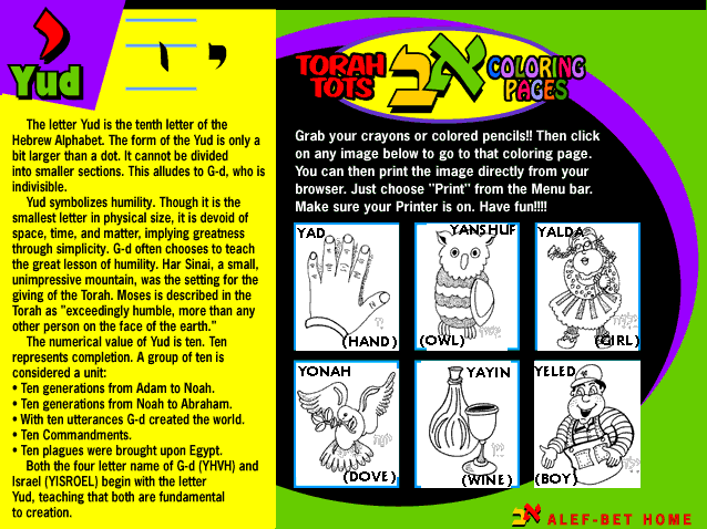 Click here for our Yud Coloring Page
